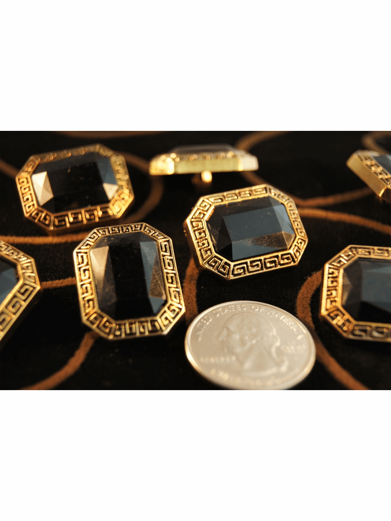 Black Gem Gold Vintage Shank Buttons 1" inch (12 pcs)